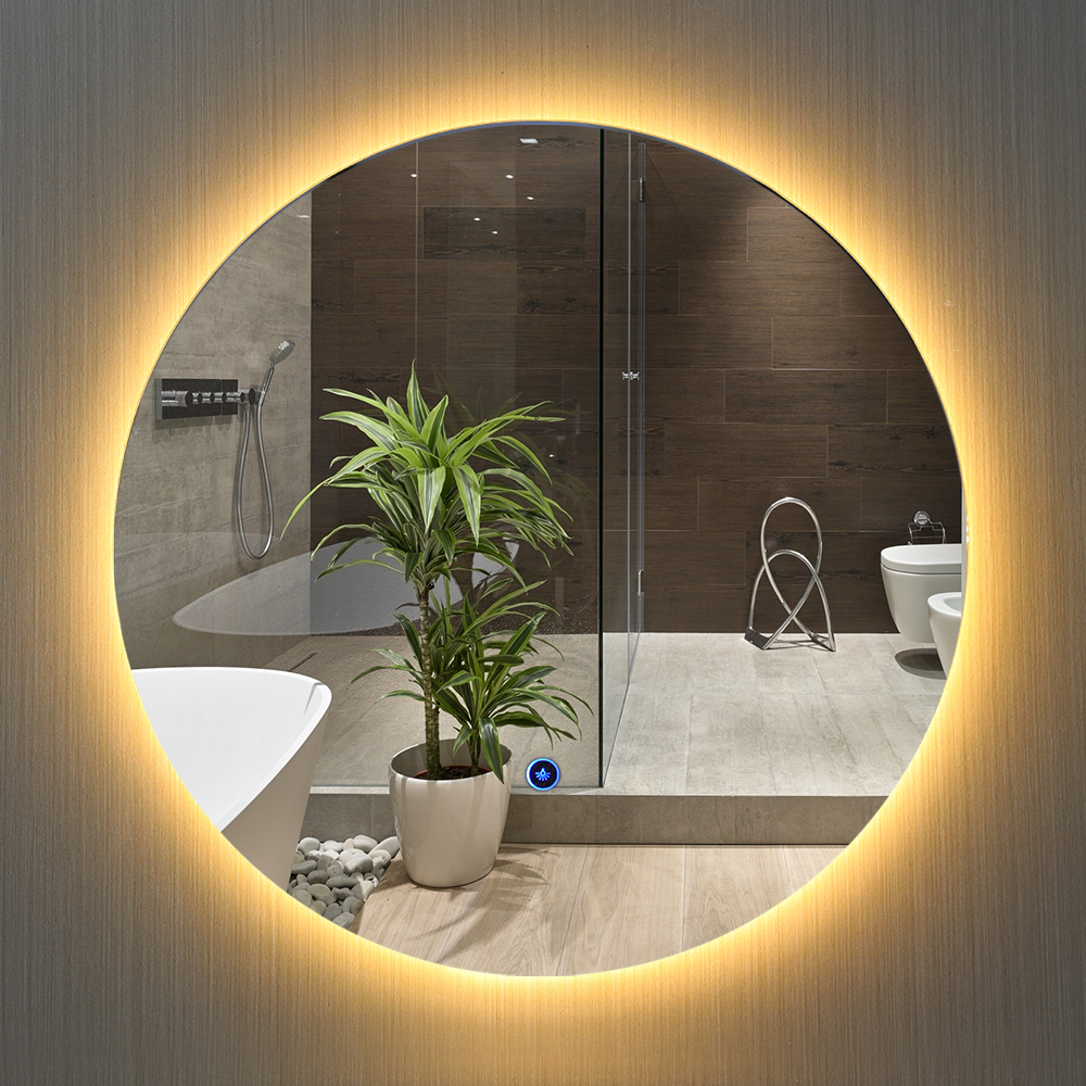 Maison / Produit / Miroir de salle de bain / Miroir de salle de bain rétro-éclairé / Miroir de salle de bain rond sans cadre de haute qualité avec LED