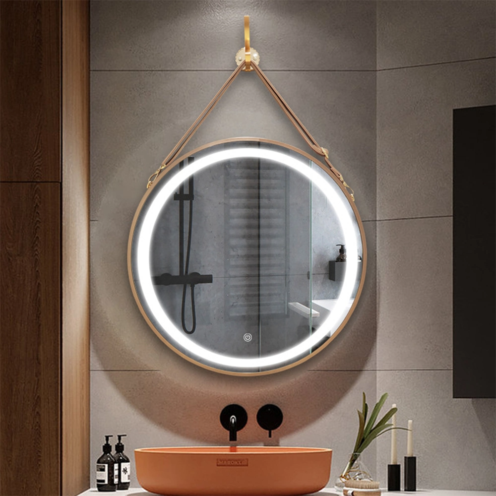 • Gars offre spéciale miroir de salle de bain 60cm 80cm hôtel décoratif moderne mur rond anti-buée miroir de salle de bain avec LED