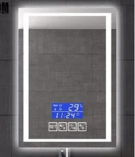 Maison / Produit / Miroir de salle de bain / Miroir de salle de bain Bluetooth intelligent avec désembuage LED et horloge numérique