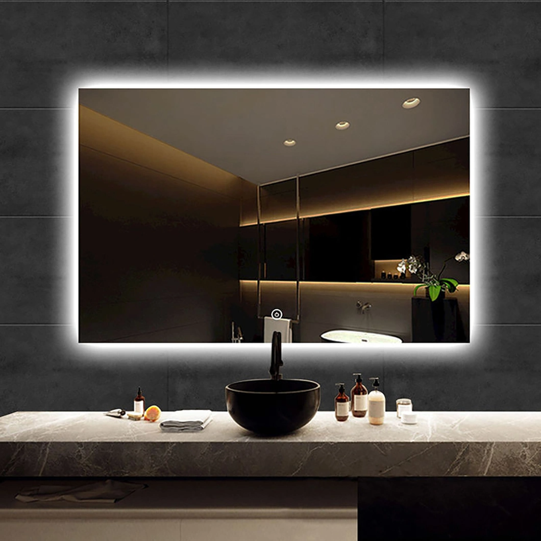 Maison / Produit / Miroir de salle de bain / Miroir personnalisé de salle de bains de miroir fait sur commande d'infini de commutateur fixé au mur moderne de capteur de contact